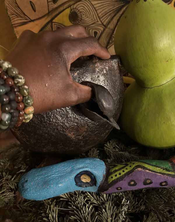 Le Fer et les Voiles. L'héritage de Shango et des Egungun. La capacité de trancher les liens obsolètes et de transformer l'atmosphère par la vibration.